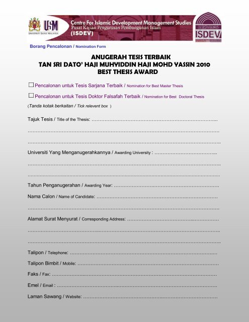 Anugerah Tesis Terbaik Tan Sri Dato Haji Usm
